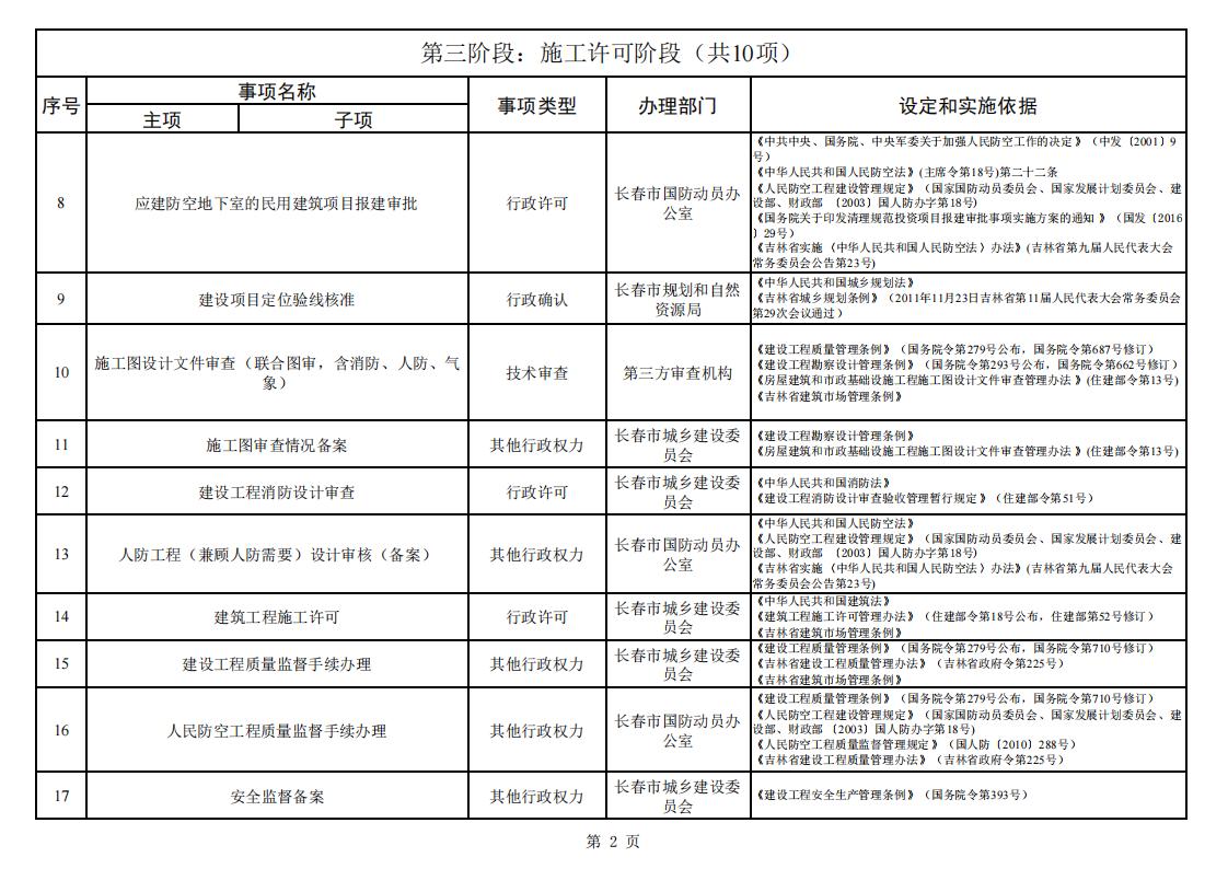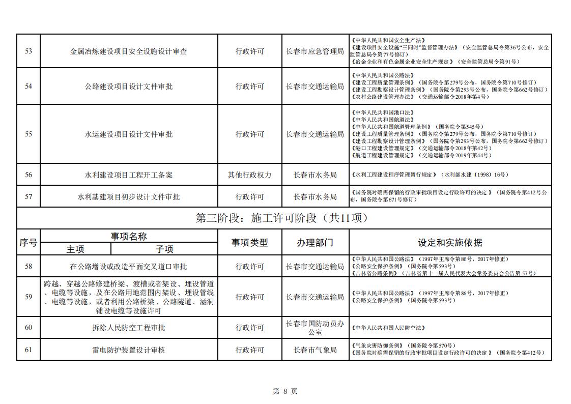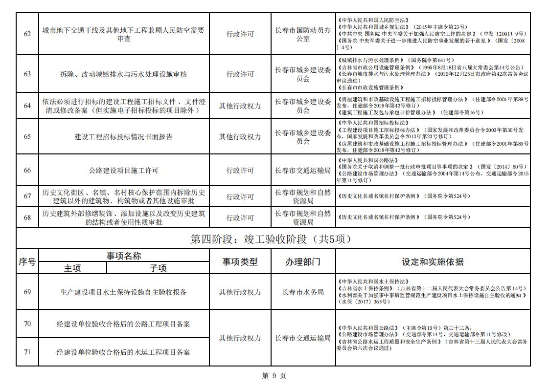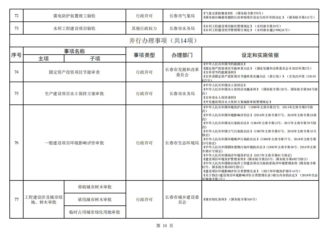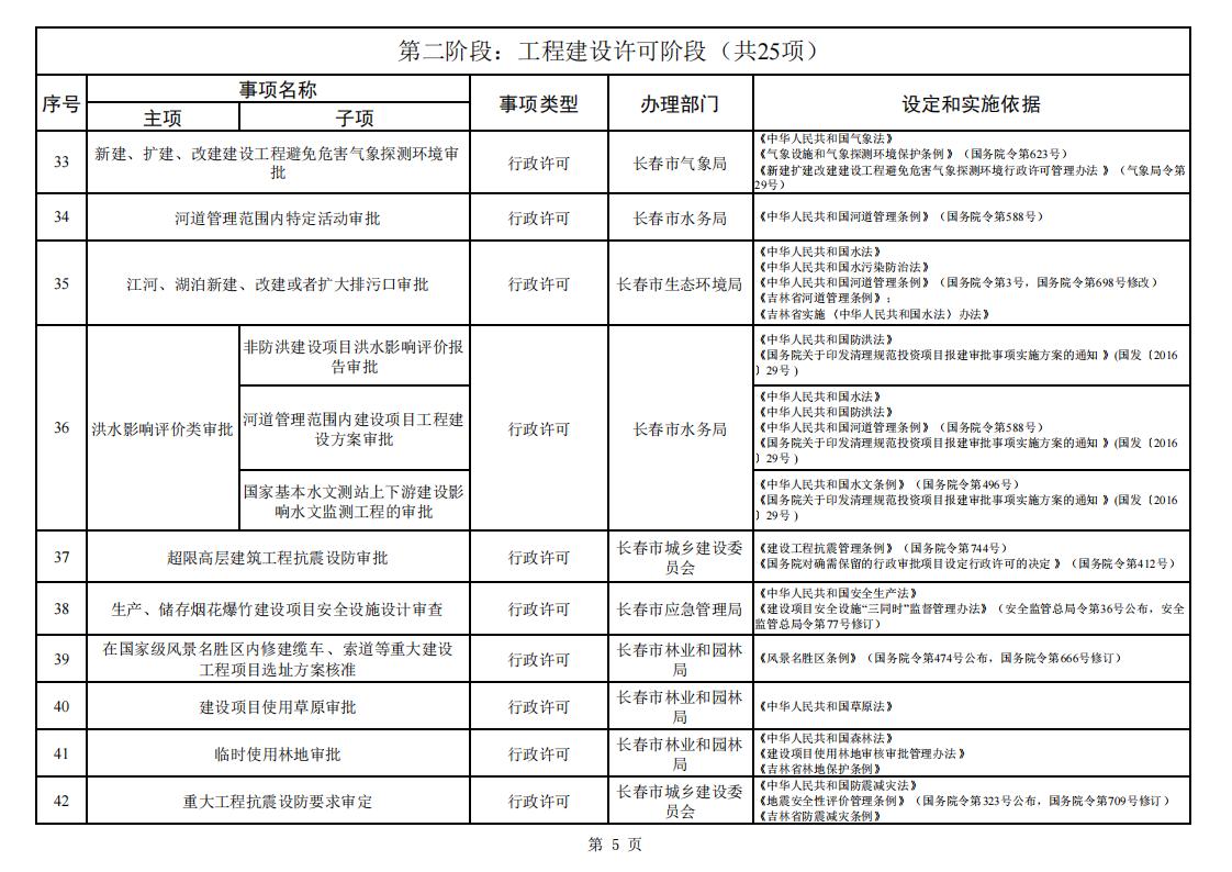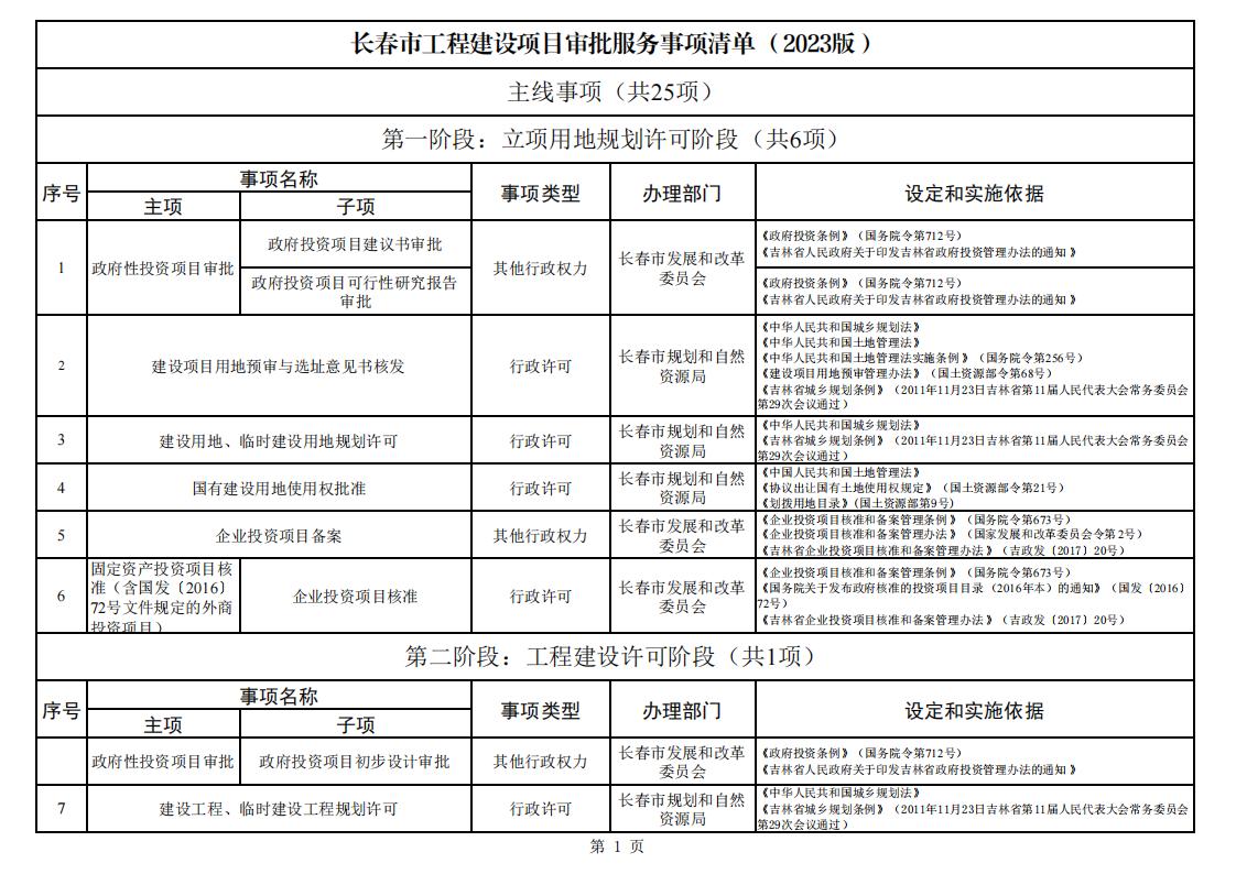 长春市工程建设项目审批服务事项清单 (2023版)